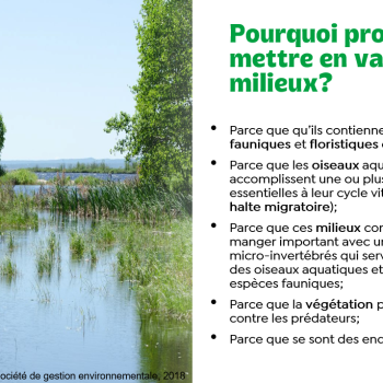 Cet atelier vise à amener les utilisateurs de VHR à être sensibilisés à la protection des zones sensibles. Nous présentons la définition et les caractéristiques d’une aire de concentration d’oiseaux aquatiques. Nous répondons à la question, pourquoi protéger ces milieux et pourquoi les mettre en valeur. Nous parlons de l’importance de protéger les plages et l’embouchure des cours d’eau pour différentes espèces vivantes.  Nous partageons le nom et les besoins de différentes espèces qui vivent dans ces milieux. Nous présentons les réglementations promues par la loi concernant la conservation et la mise en valeur de la faune et nous partageons des exemples de bonnes pratiques pour protéger ces écosystèmes.