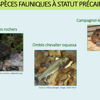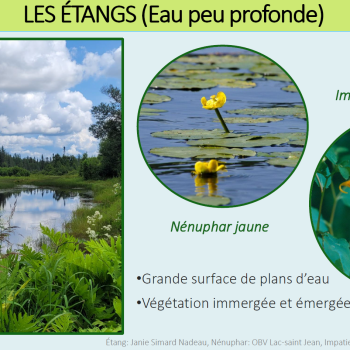 Cet atelier vise à sensibiliser les jeunes face à l’importance de protéger les milieux naturels. Nous présentons les 4 types de milieux humides qui existent sur le territoire et leurs caractéristiques. Nous parlons de la faune et de la flore qui y vivent et de ceux qui possèdent des statuts précaires. Nous répondons à la question, qu’est-ce qui menace les milieux naturels et pourquoi les milieux humides sont importants. Nous réalisons un jeu sur la chaîne alimentaire et offrons des activités expérimentales sur l’absorption de l’eau et l’érosion du sol. Finalement nous partageons les manières de participer à la conservation des habitats fauniques.
