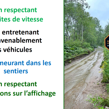 Cette formation vise à sensibiliser tous les utilisateurs de VHR à la protection des milieux naturels. Nous décrivons les lois qui protègent les milieux naturels. Nous répondons aux questions: les milieux humides et hydriques c’est quoi, ils servent à quoi, qu’est-ce qui les menace et comment faire pour les protéger. Nous présentons les différentes espèces fauniques et floristiques qu’on retrouvent sur le territoire et ceux qui ont un statut précaire. Nous présentons les outils de sensibilisation qui existent sur le territoire comme la Route des milieux humides et ceux que nous avons créés, comme des capsules sur les réseaux sociaux et de l’affichage que l’on retrouve dans les sentiers (panneaux signalétiques) de VHR et dans plusieurs relais (cartes didactiques) au Lac-Saint-Jean.